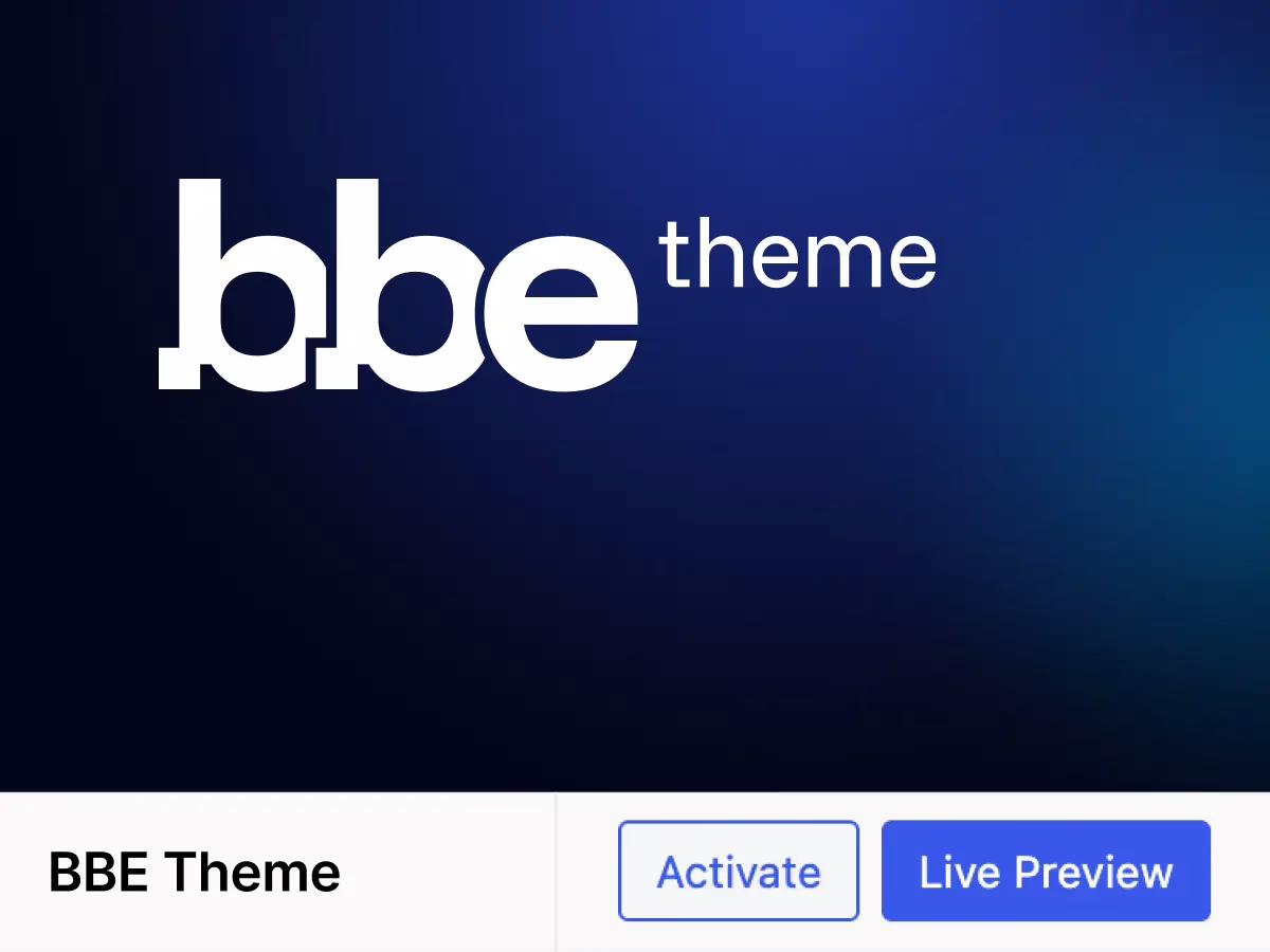 A companion block theme designed to match BBE’s design system — colors, spacing, and typography. It also adds extra styles for Navigation, Buttons, and other blocks. BBE Theme is a fastest path to a polished, fully responsive site.